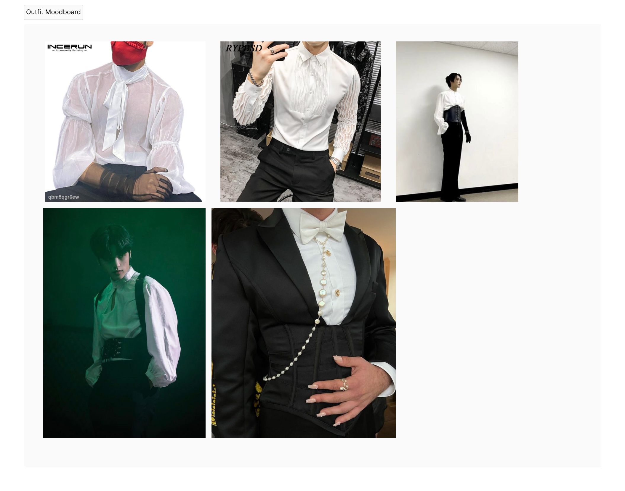 Pinterest of course was our best friend during this stage. I had built a mood board of what I wanted to wear. The outfits I wanted to wear spanned from the simple but elegant to the all-out extravagant and avant-garde fashion.
